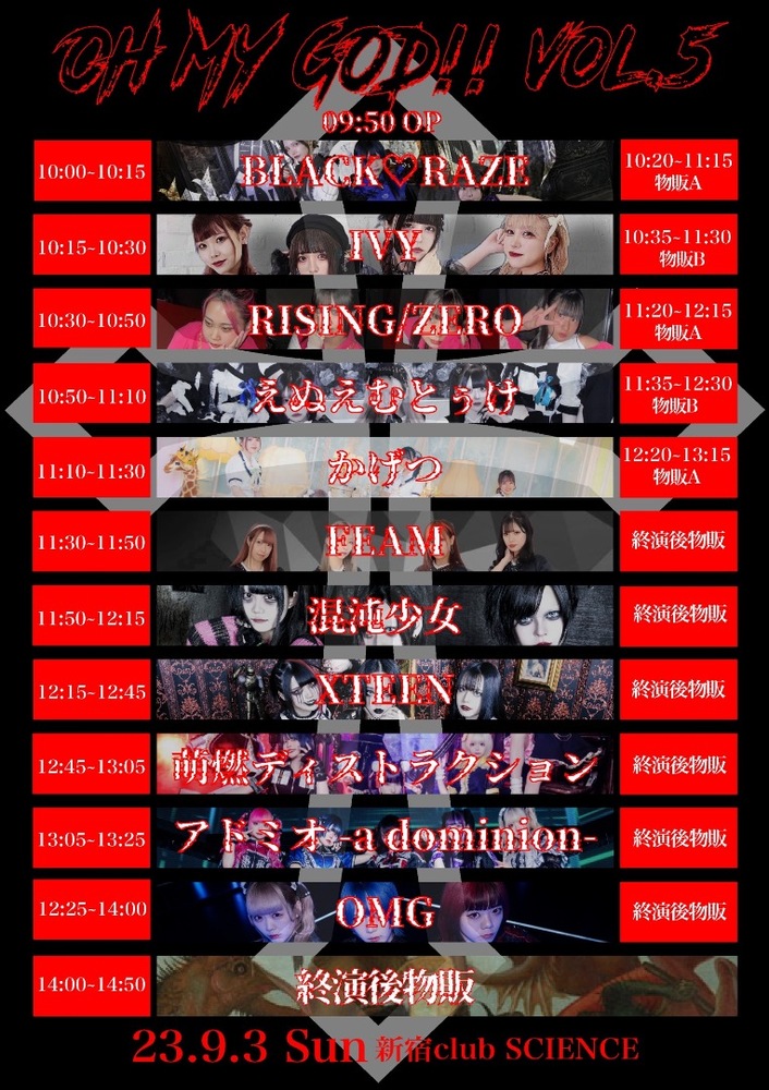 出演:OMG、XTEEN、FEAM、混沌少女、えぬえむとぅけ、かげつ、RISING/ZERO、BLACK♡RAZE、IVY、アドミオ-a dominion-、萌燃ディストラクション